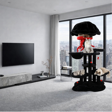 Ultra-soft, furniture-grade fabrics elevate comfort and style. The material wraps a sculpted modern cat tower, making it ideal for décor-focused homes. With rich textures and refined details, it blends luxury aesthetics with the charm of unusual cat trees.