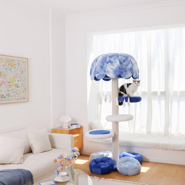 Our jellyfish-inspired cat tree with lights combines a modern cat tower look with nighttime comfort. The soft glow turns it into aesthetic tall cat furniture, helping pets move safely in the dark. Built as a playful wooden cat tree, it remains one of the most unique cat towers for stylish homes.